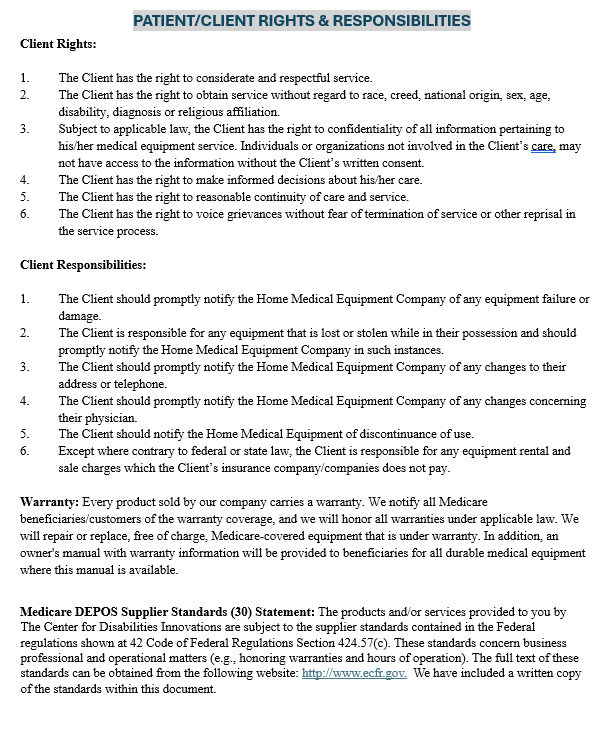 PATIENT/CLIENT RIGHTS & RESPONSIBILITIES